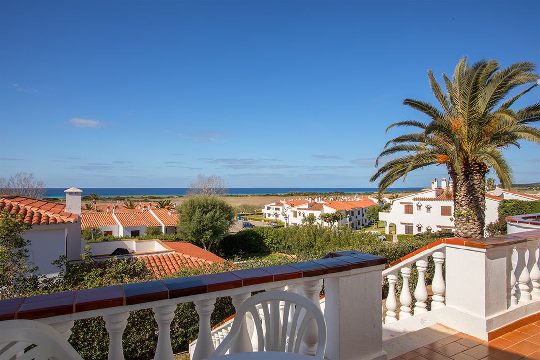 This magnificent spacious villa is divided into 2 apartments with a private pool. The property has an excellent location in Son Bou. It is not on a hillside, the beach is easily accessible on foot and offers beautiful sea views from the balcony.